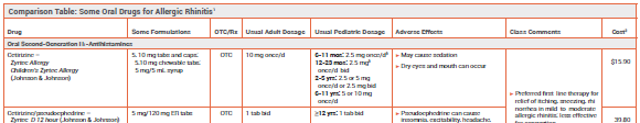 View the Comparison Table: Some Oral Drugs for Allergic Rhinitis