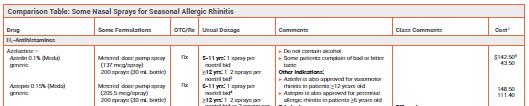 View the Comparison Table: Some Nasal Sprays for Seasonal Allergic Rhinitis