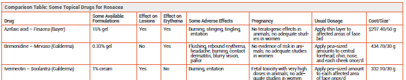 Comparison Table: Some Topical Drugs for Rosacea (online only)