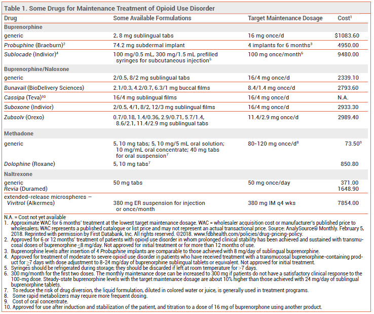 View Comparison Table: Some Drugs for Maintenance Treatment of Opioid Use Disorder