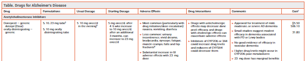 Comparison Table: Drugs for Alzheimer's Disease (online only)