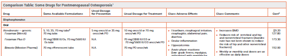 Comparison Table: Some Drugs for Postmenopausal Osteoporosis (online only)