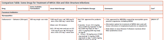 Comparison Table: Some Antibiotics for MRSA Skin and Skin Structure Infections (online only)