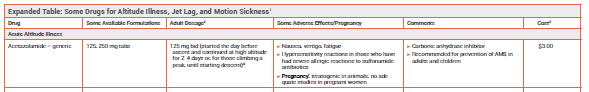 Expanded Table: Some Drugs for Altitude Illness, Jet Lag, and Motion Sickness (online only)