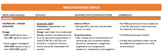 - Discuss the role of available and investigational drugs in the management of COVID-19.