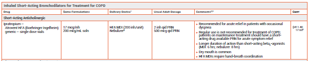 View the Comparison Table: Inhaled Short-Acting Bronchodilators for Treatment of COPD