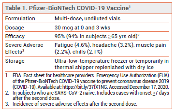 - FDA. Fact sheet for health care providers administering vaccine (vaccination providers). Emergency Use Authorization (EUA) of the Pfizer-BioNTech COVID-19 vaccine to prevent coronavirus disease 2019 (COVID-19). Available at: https://bit.ly/37fX1NG. Accessed December 17, 2020.