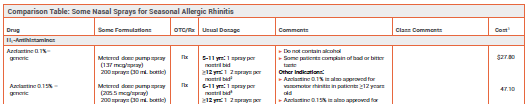 Comparison Table: Some Nasal Sprays for Allergic Rhinitis (online only)