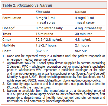 - Compare the pharmacokinetic properties of the new 8-mg intranasal formulation of naloxone (Kloxxado) to other available formulations of the drug.