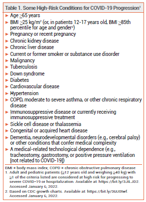 - FDA. Fact sheet for health care providers: Emergency Use Authorization for Paxlovid. December 22, 2021. Available at: https://bit.ly/3sTNGqh. Accessed January 6, 2022.