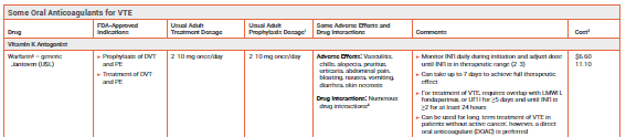 View the Comparison Table: Some Oral Anticoagulants for VTE