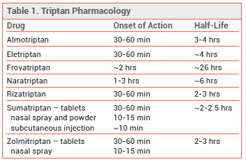 - The shorter-acting oral triptans sumatriptan, almotriptan, eletriptan, rizatriptan, and zolmitriptan are similar in efficacy, speed of onset, and duration of action.