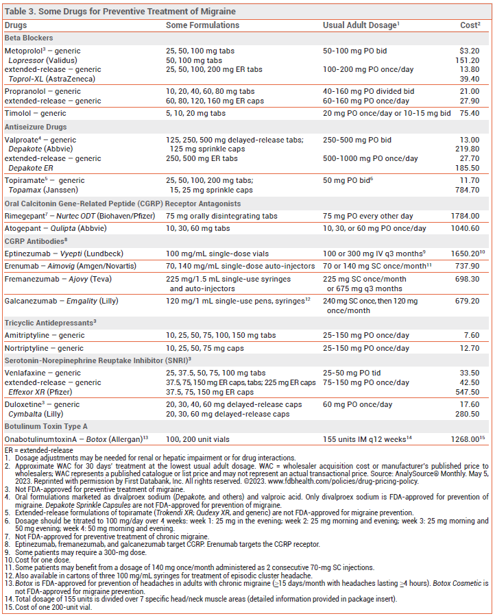View the Comparison Table: Some Drugs for Migraine Prevention in Adults