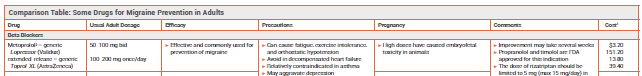 View the Comparison Table: Some Drugs for Migraine Prevention in Adults