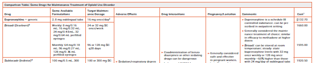 Comparison Table: Some Drugs for Maintenance Treatment of Opioid Use Disorder (online only)