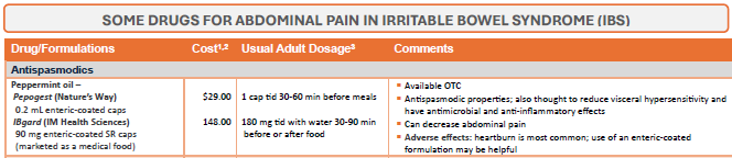 Comparison Chart: Some Drugs for Abdominal Pain in Irritable Bowel Syndrome (IBS) (online only)