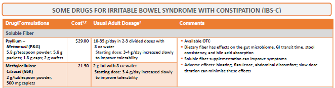 Comparison Chart: Some Drugs for Irritable Bowel Syndrome with Constipation (IBS-C) (online only)