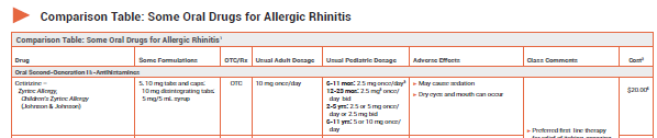 Comparison Table: Some Oral Drugs for Allergic Rhinitis (online only)